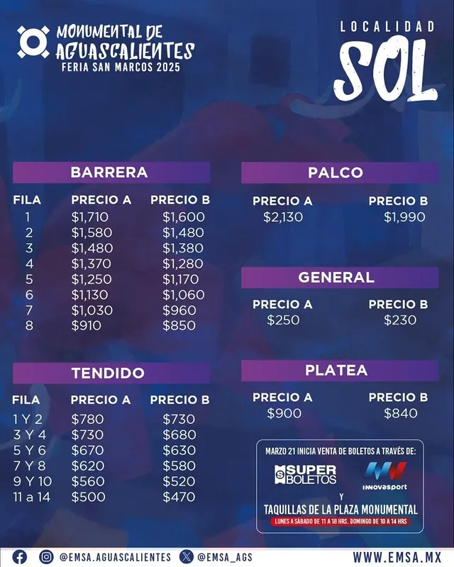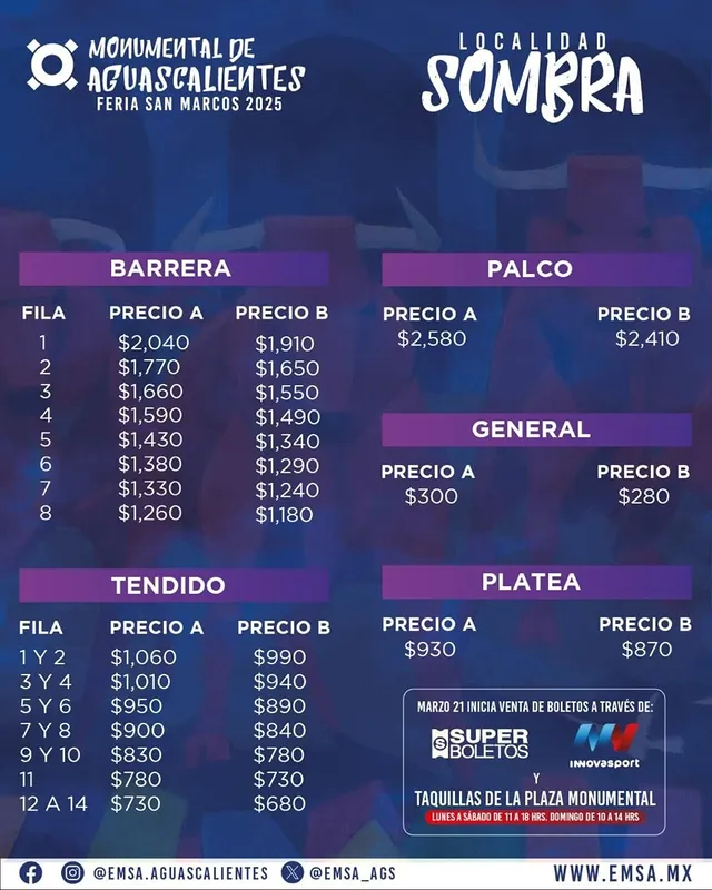 MARZO 21 INICIA VENTA DE BOLETOS A TRAVÉS DE: